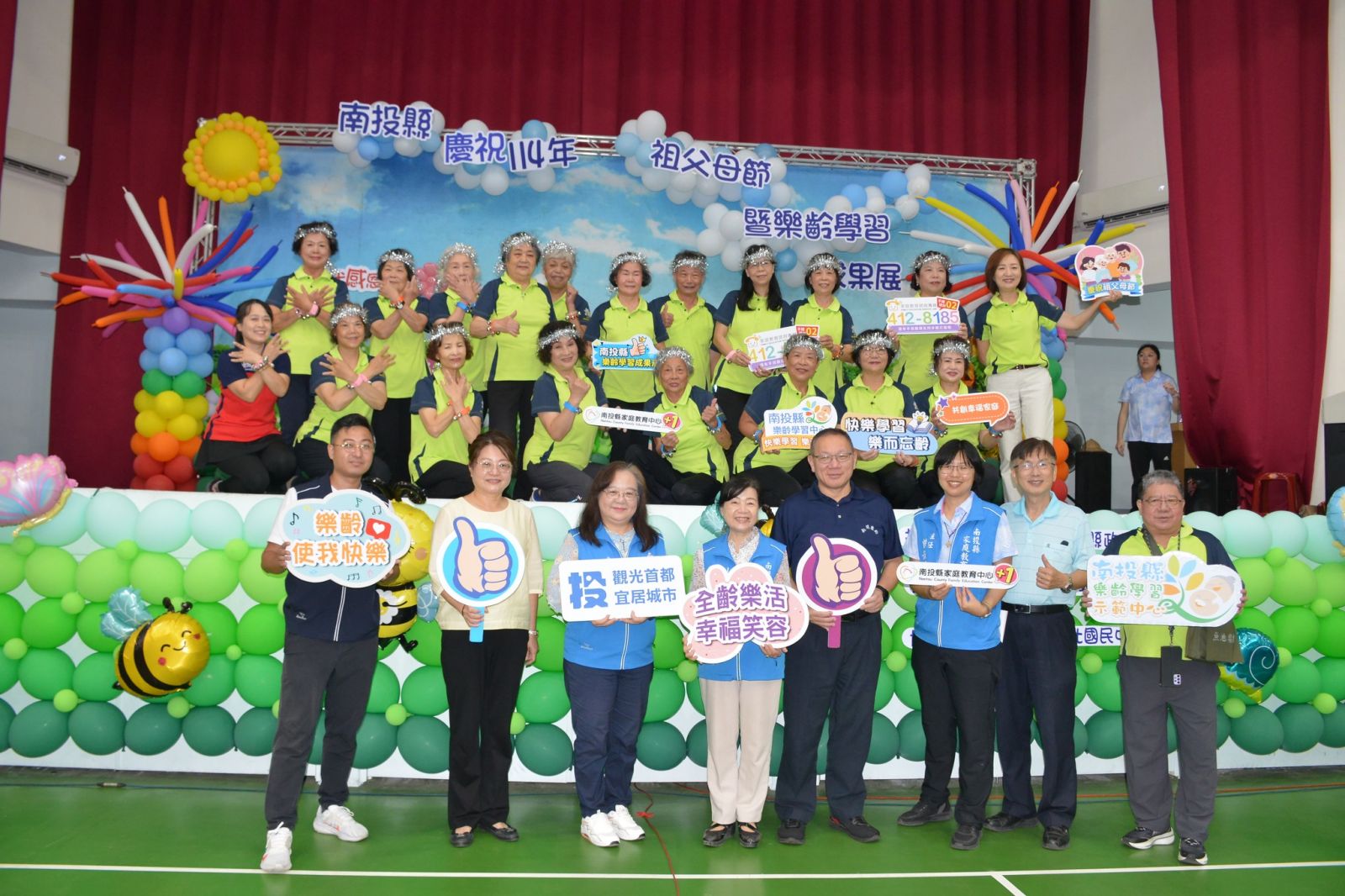 為促進家庭代間情感交流,響應教育部自民國100年起訂定的「祖父母節」,南投縣家庭教育中心於8月16日在縣立營北國中舉辦「代代感恩心.祖孫創意秀」祖父母節慶祝活動暨樂齡學習成果展。活動現場熱鬧非凡,由南開科技大學辦理的草屯樂齡學習中心憑藉豐富課程與深耕推動,榮獲114年度樂齡學習中心訪視評鑑「特優」殊榮,展現多年來在樂齡教育上的卓越成果。