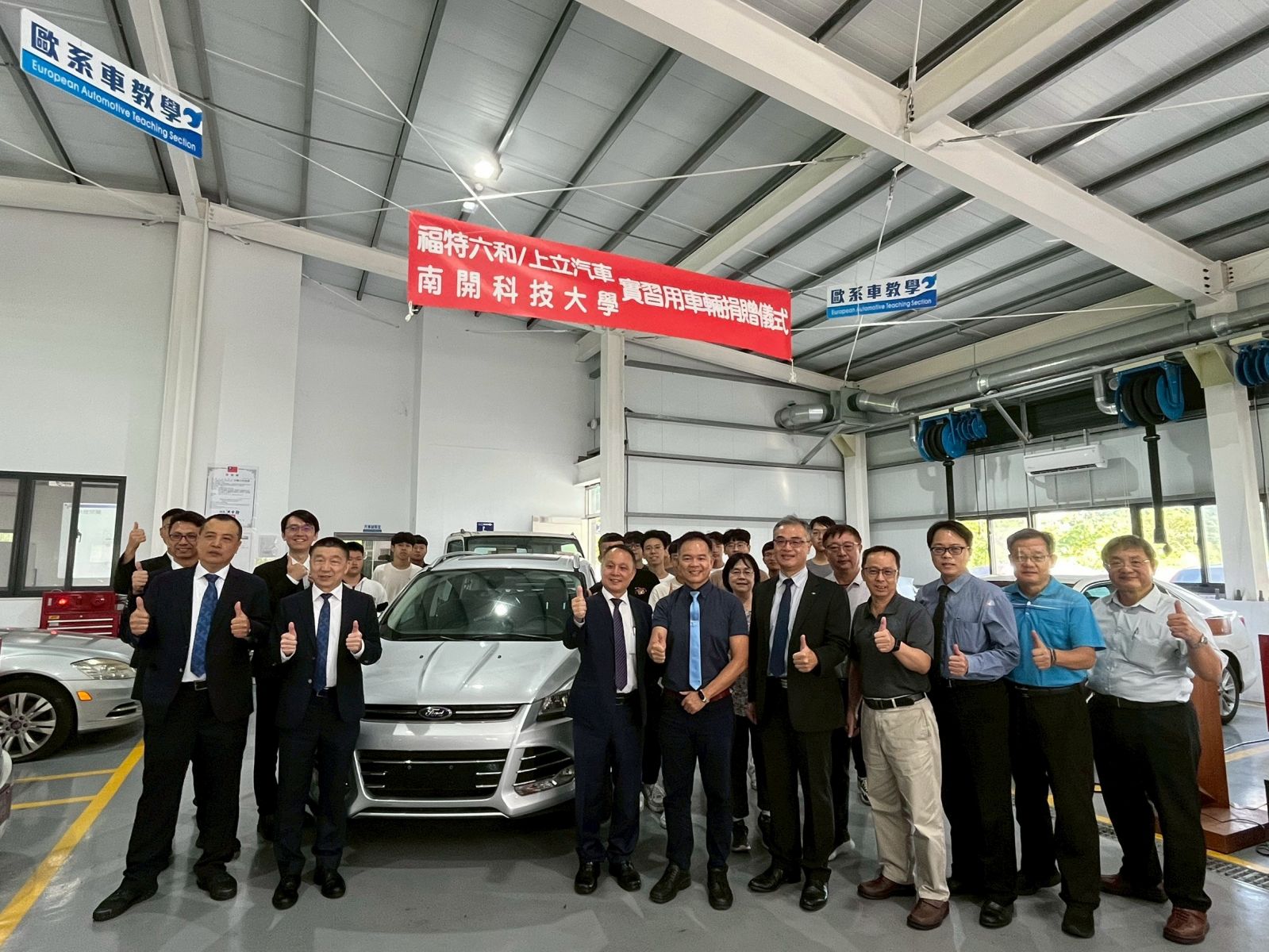 福特六和汽車公司與上立汽車公司為南開科技大學車輛工程系長期配合的策聯盟合作夥伴,提供學生校外實習工作崗位,縮短學生落差,銜接就業職場。福特六和汽車於110學年度曾贈福特商旅車旅行家(Tourneo Custom)作為該系教學實習檢修用車輛,對於學生學習商旅車型柴油引擎動力及廢氣排放系統有極大助益;此次,福特六和汽車再度捐贈福特Kuga車款,該車款具備渦輪增壓動力系統及主動安全科技系統,將強化該系師生的先進科技車輛維修技術能量,培育未來先進車輛產業市場人才需求,共雙贏局面。