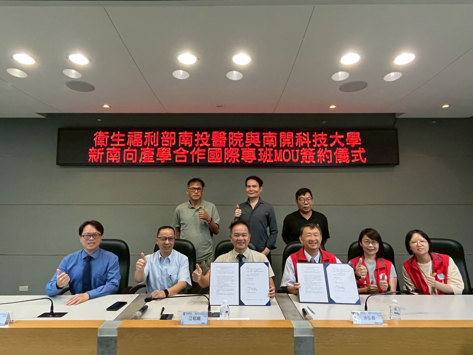 循此,本校長期照顧與管理系擬申請115學年度新南向產學合作國際專班,投入照顧服務國際人才培育工作,特與衛生福利部南投醫院洽談產學合作,未來南投醫院擬提供本校國際專班學生實習機會,共同致力於照顧服務人才之培訓。